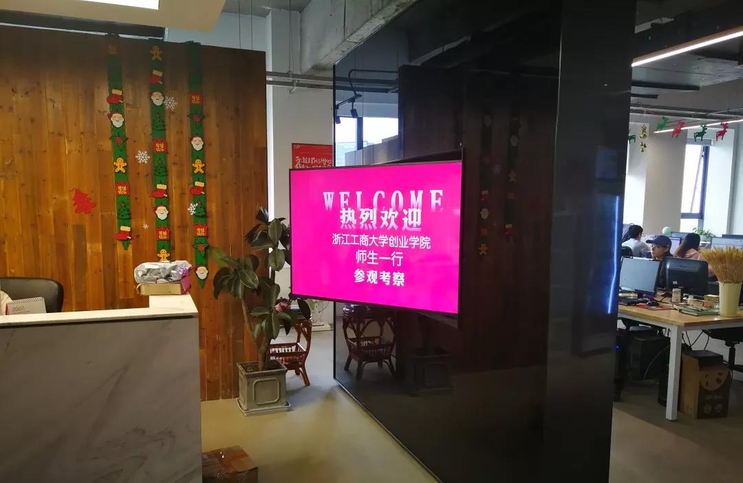 刚到达11楼,工作人员就热情地接待创业班同学。进入公司办公区,经理热情迎接,向同学们表达欢迎之意。