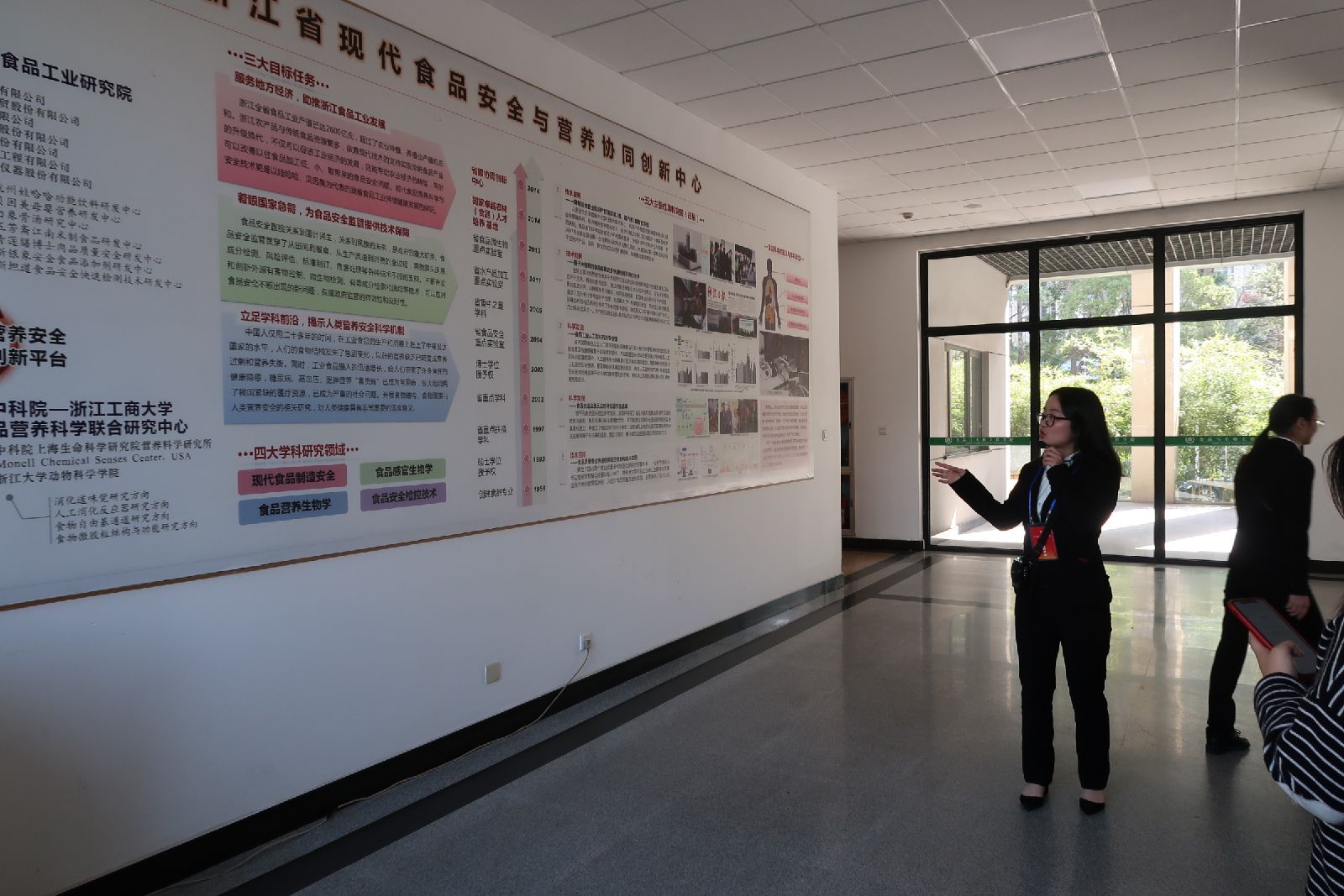 朱素平向同学们详细介绍了三楼大型仪器共享平台、智能感官实验室、我校与新西兰梅西大学联合成立的食品消化与营养联合实验室以及我校与英国利兹大学成立的食品口腔加工联合实验室等。